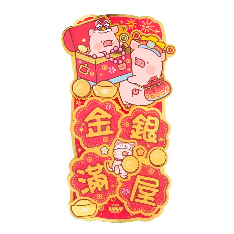 LuLu The Piggy Pop-up Fai Chun 紅色立體揮春 - 金銀滿屋