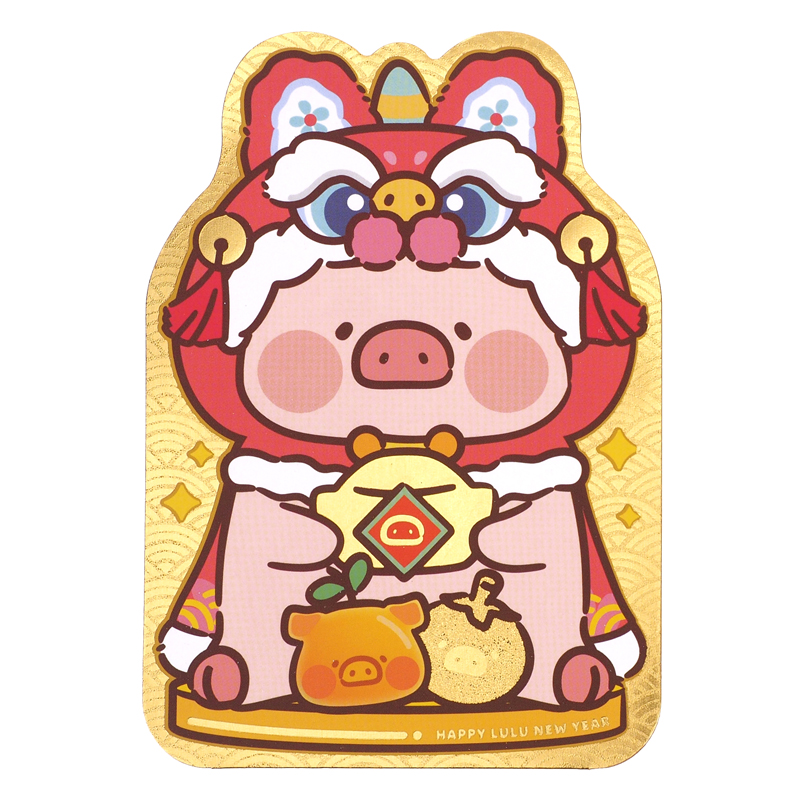 產品名稱: LuLu The Piggy 舞獅造型燙金大利是封 (6個/ 包)